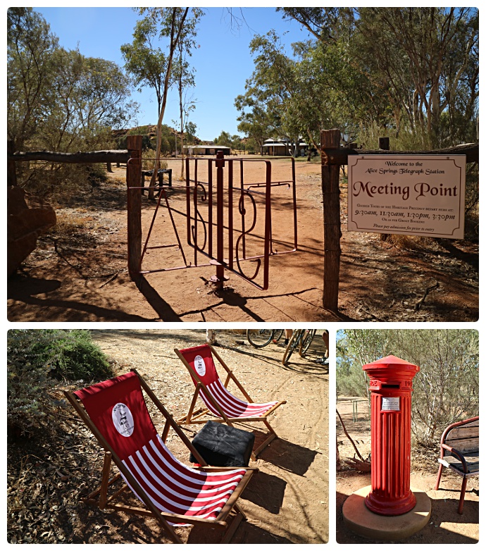 Our next destination was the Old Telegraph Station. It was very different to when we were here in 1993. We parked Bertha in the large carpark and walked down new paths towards the new café/shop where we met a dingo! This is where you pay your entry fee, and can join a free guided tour if required. One very interesting feature at the café is an original letterbox where each letter posted there receives a special souvenir postmark from the Old Telegraph Station.