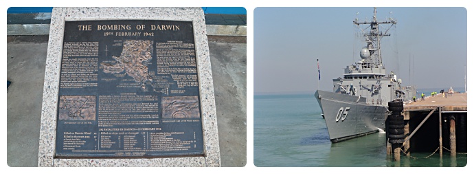 We chose to visit the Bombing of Darwin display on Stokes Hill Wharf, which is where our cruise left from several days before. The facility is shared with the Royal Flying Doctor Service and it was great to be able to learn more about both these important aspects of Darwin’s history. Interestingly there was a naval vessel moored at the wharf when we visited the WWII display.
