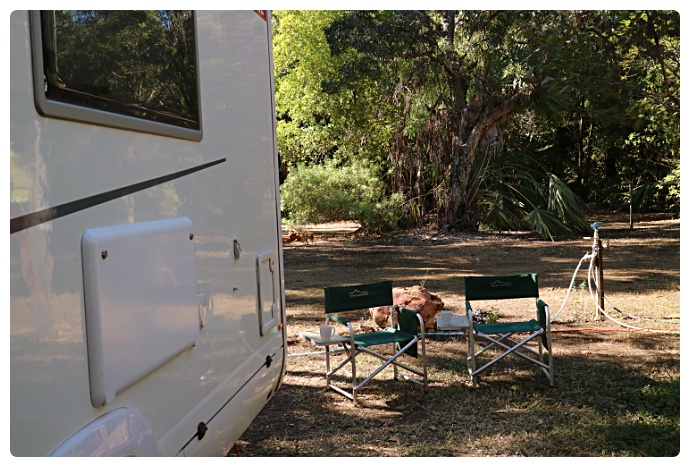 Today’s adventure again highlighted the advantages of travelling in a motorhome. On such a hot day we could load the shopping straight into the fridge and cupboards, plus we could enjoy a cool drink and a wash – how good is that!