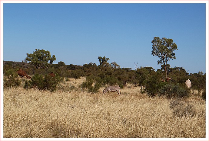 As mentioned yesterday, dingoes and wild dogs are a problem here. There are signs all over the place warning about feeding or in any-way encouraging them. They turn up at mealtimes and you can hear a voice saying “Shoo – go away!” Unperturbed the dingoes simply move on to the next van and the next van says “Shoo – go away!” and so on. Just like a verbal Mexican wave. Hilarious!! Sometimes other words with the same meaning are used, but this is a family friendly blog so I won’t repeat them here. There were some upturned rubbish bins about the park this morning and it is pretty obvious who the culprits were.