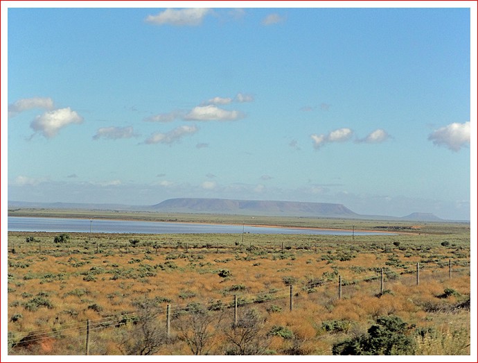 After a farewell chat with our neighbours, packing up and refuelling, we were off – heading North along the Stuart Highway, a road we haven’t travelled on before. Not far out of Port Augusta and we were in saltbush country – that is all there was to see. It was a great road and ideal driving weather, but the scenery was a little boring. There were some large road trains occasionally, a few sheep grazing here and there, and cattle grids to keep us awake.