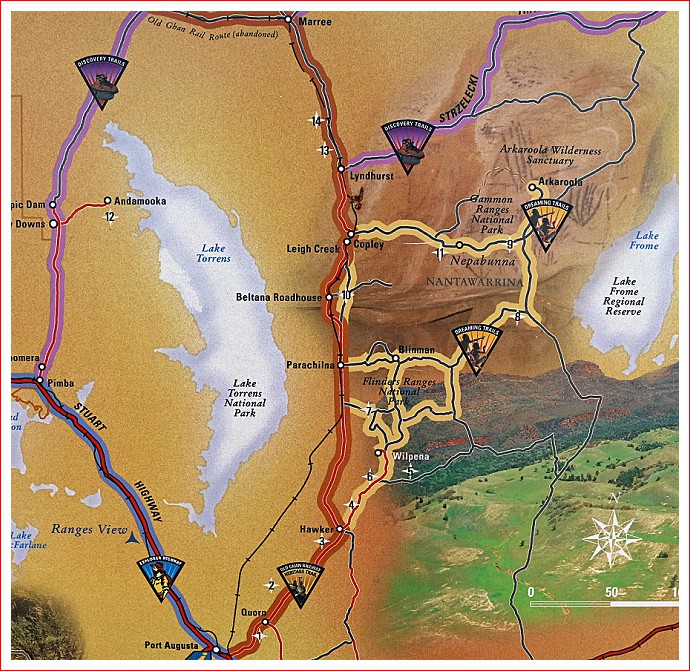 We stopped for lunch at Spud’s Roadhouse at Pimba. Very much a typical outback establishment, Spud’s serves fuel, food, alcohol, is a general store, offers accommodation and has pokies. A great all-rounder. It was cold and windy so we couldn’t resist a small bag of very fresh and tasty hot chips – we did have some healthy stuff for lunch too! The roadhouse also offers free camping and there are clean toilets and showers available for a small fee.
