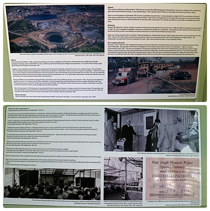 Building B contains the Rum Jungle Exhibition which is quite fascinating. The extent of the operation was huge and employed a great number of miners and associated trades and support staff. When it started in 1952, the Rum Jungle Uranium Mine was the major economic activity in Australia at the time. The entire town of Batchelor existed to support the mine. There are reproductions of documents, enlarged photos, stories of individuals, plus collections of newspaper cuttings and other interesting material.