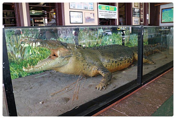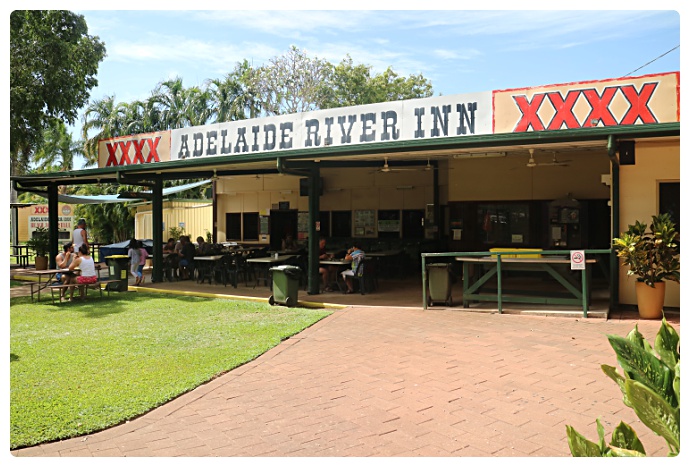 After coffee and our Museum tour, we returned to the Stuart Highway for the next stage of today’s journey. Our lunch stop was at Adelaide River. We parked outside the BP servo and walked through to the heritage Adelaide River Inn – some readers might remember this place from the Crocodile Dundee movie, although the interior is now a little different. Perhaps not surprisingly, there is a stuffed croc outside the bar – ‘Jock the Crock’ was 5 metres long and weighed in at 720 kg.
