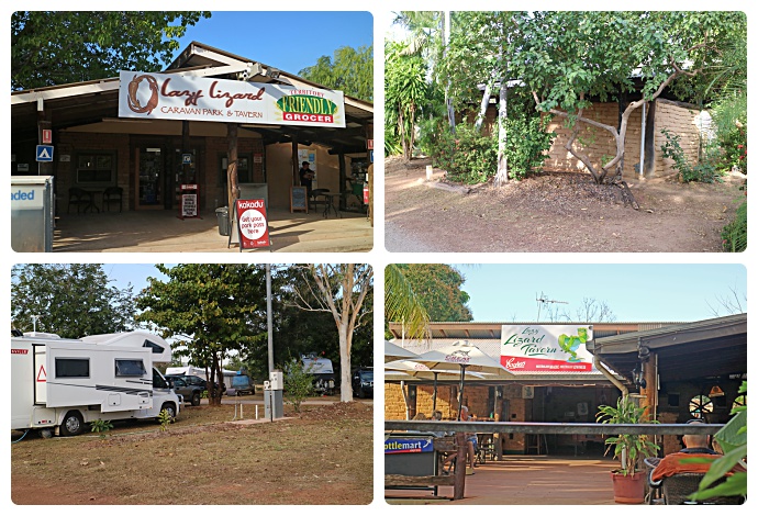 We have a powered site at the Lazy Lizard Caravan Park & Tavern for the night. It has been a hot day and the ability to use the air-con was not negotiable!