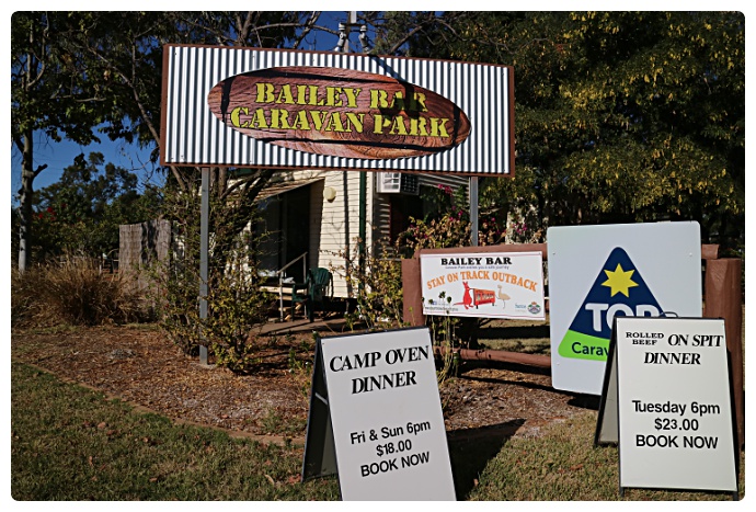 The State of Origin Rugby match is on tonight and accommodation is at a premium everywhere. Anecdotally we understand that many free-campers head in to caravan parks to ensure that they can watch the big game. We experienced this same issue in 2013 so we thought that we would ring ahead to Charleville – just as well! We eventually booked a site at Bailey Bar Caravan Park in Charleville.